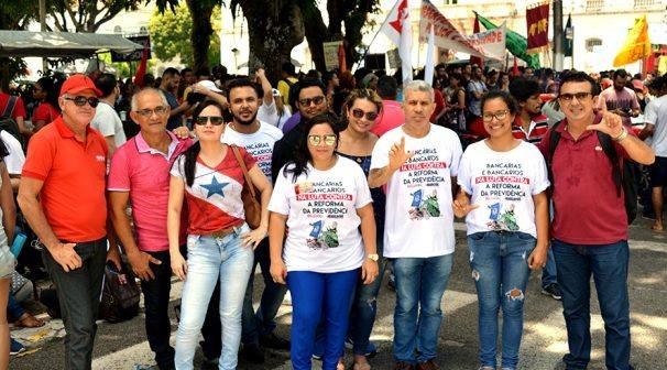 “O Brasil vive uma conjuntura de retrocessos e de ataques aos direitos da classe trabalhadora, sobretudo com a reforma trabalhista, reforma da previdência, contingenciamento de verbas para as Instituições Federais de Ensino e censura aos cientistas e produtores culturais. Não há como aceitarmos passivamente essa situação e por isso não abrimos mão de lutar pelos interesses do povo e do Brasil”, afirma o secretário geral do Sindicato dos Bancários do Pará, Sérgio Trindade.