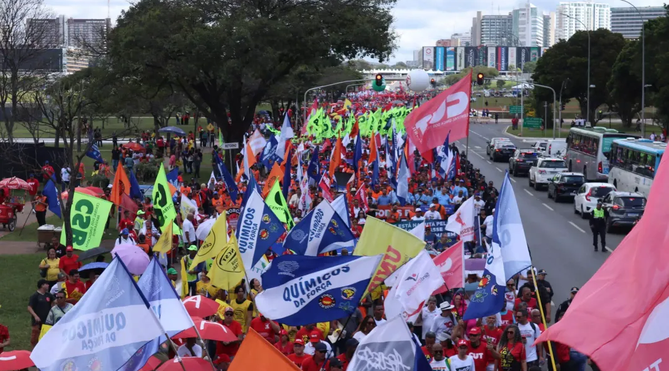 A manifestação em Brasília começou com uma concentração às 8h no estacionamento do Teatro Nacional, seguida de uma plenária nacional com todos os trabalhadores presentes. E terminou com a entrega da pauta de reivindicações ao presidente Lula e aos presidentes da Câmara e do Senado. Saiba mais aqui.