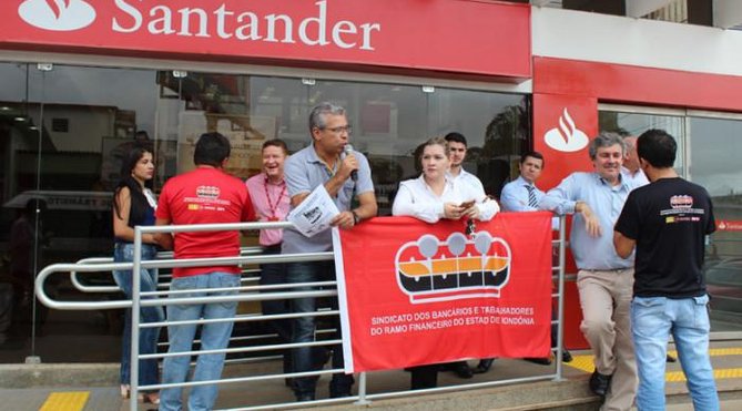 "Mas está claro que o Santander está rasgando a Constituição e a Convenção Coletiva da categoria, desrespeitando o processo negocial e mais uma vez adotando uma postura autoritária e arbitrária, atacando direitos conquistados e mantidos durante anos e mais anos. A população precisa saber que o Santander explora seus trabalhadores e explora também a sociedade brasileira como um todo, já que todo o seu lucro vai para a sede do banco, na Espanha, e não fica nada aqui no Brasil. Mais uma prova de que o Santander, a exemplo de outros bancos, não se preocupa com os trabalhadores, com o povo ou com o desenvolvimento do país. O único propósito dos bancos sempre foi, é e sempre será o lucro próprio e nada mais", disparou Cleiton dos Santos, diretor de Formação Sindical do Seeb-RO e presidente da Fetec/CN.