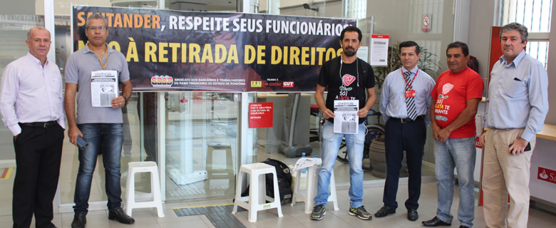 "Para alguns esses pontos não seriam tão graves, mas isso é apenas a ponta do iceberg, pois sabemos que o Santander está colocando em prática a reforma trabalhista que só existe para retirar direitos. E todas essas iniciativas estão sendo implantadas pelo banco sem sequer haver alguma discussão com os sindicatos dos trabalhadores. Ou seja, o ano de 2017 ainda nem acabou e já estamos enfrentando a voracidade dos poderosos em querer reduzir ou extinguir todos os direitos de seus funcionários, e a previsão para o ano que vem é ainda pior, e por isso estamos aqui, informando não apenas os trabalhadores, mas toda a população, para que nossa luta não pare e que receba o apoio de todos", menciona Clemilson Farias, diretor de Imprensa do Sindicato dos Bancários e Trabalhadores do Ramo Financeiro de Rondônia (Seeb-RO) e funcionário do Santander.