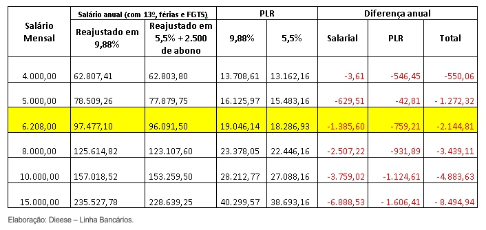 O Departamento Intersindical de Estatísticas e Estudos Socioeconômicos (Dieese) fez um estudo mostrando que a proposta rebaixada da Fenaban provocará perdas significativas nos salários dos bancários.