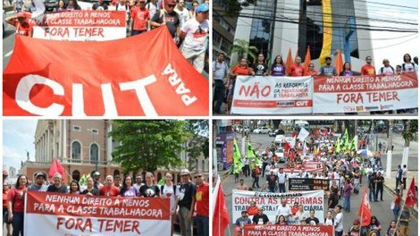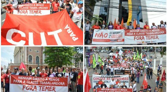 Em Belém, o ato público convocado pela CUT e demais centrais sindicais, além das Frentes Brasil Popular e Povo Sem Medo, teve concentração na Praça da República e seguiu em passeata até à sede da Previdência Social, no bairro de Nazaré.