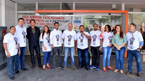 Revoltados com essa proposta indecente, o Sindicato dos Bancários de Mato Grosso (Seeb/MT), sob a orientação do Comando Nacional, na manhã desta quarta-feira (22.04), retardou a abertura da agência do Itaú, localizada no Centro de Cuiabá.