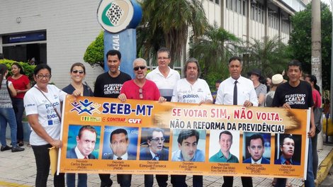 Em Cuiabá, o ato público e panfletagem ocorreram na frente à Agência do Instituto Nacional de Seguridade Social (INSS) localizada na Avenida Getúlio Vargas. O Sindicato dos Bancários de Mato Grosso (Seeb/MT) marcou presença na mobilização contra a "reforma" da Previdência com faixa estampando a cara dos deputados federais com a frase “Se votar, não volta”.