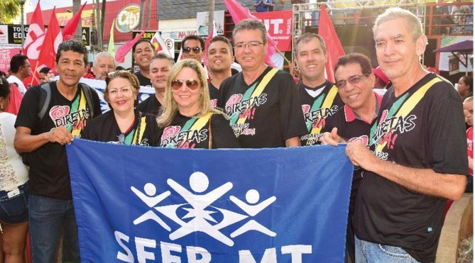 O Sindicato dos Bancários de Mato Grosso (Seeb/MT) somou-se aos 5 mil manifestantes que cuparam a Praça Ipiranga, Centro de Cuiabá, para participar do Ato Cultural em protesto contras as reformas trabalhistas e previdenciária e para cobrar Diretas Já e dizer Fora Temer. O Ato Cultural "Contra a retirada de Direitos e Fora Temer" encerrou o Dia de Greve Geral em Cuiabá, que exemplo do dia 28 de abril, parou Geral.
