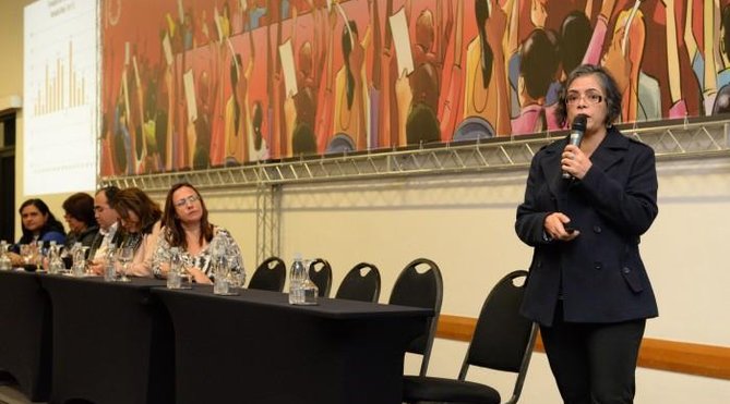 A economista apresentou números sobre a evolução do Produto Interno Bruto (PIB) do Brasil, que revelam uma queda de -3,80 em 2015 e a projeção de -3,35% em 2016. Para o próximo ano há uma perspectiva de ligeiro crescimento, algo em torno de 1%.
