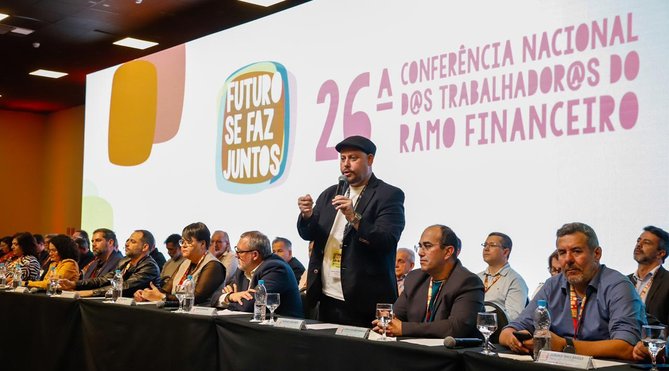 Os bancários têm o desafio de avançar na obtenção de novos direitos na Campanha Nacional deste ano, não apenas para acrescentar novas conquistas na Convenção Coletiva de Trabalho (CCT), mas também para abrir o caminho para que outras categorias também possam alcançar vitórias e assim fortalecer a luta da classe trabalhadora, a democracia e o futuro do Brasil. A avaliação foi feita nesta sexta-feira 7 por Rodrigo Britto, presidente da Federação dos Bancários do Centro-Norte (Fetec-CUT/CN), na aberta da 26ª Conferência Nacional dos Trabalhadores do Ramo Finandeiro, que está sendo realizada em São Paulo.