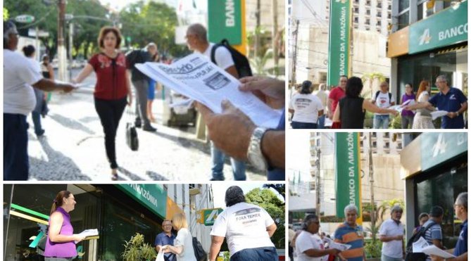 Em resposta aos bancários e bancárias, o Sindicato esteve na manhã desta quinta-feira (13), em frente à matriz do banco em Belém, para distribuir informativo impresso explicando, mais uma vez ao funcionalismo, os reais motivos da não assinatura do acordo específico.