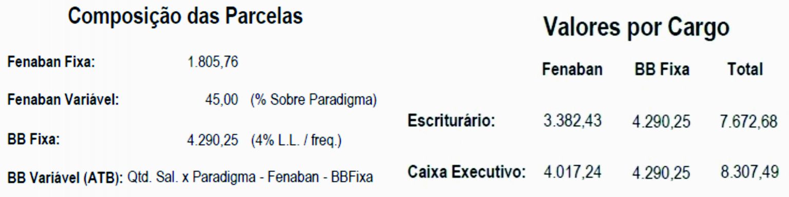 Pelo módulo Fenaban, o funcionário recebe 45% do salário paradigma definido no acordo, acrescido de parcela fixa a ser definida pelo banco, para cada semestre.