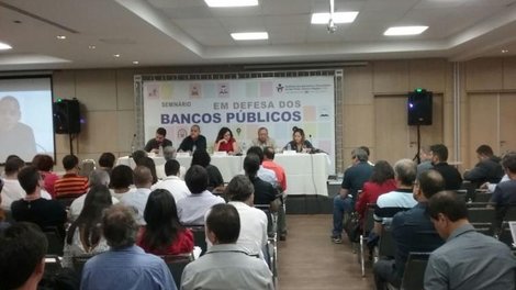 A presidenta do Sindicato, Juvandia Moreira, que mediou a mesa, lembrou que a resistência ao desmonte dos bancos públicos é a função do seminário, evento que lançará a cartilha Em Defesa dos Bancos Públicos: Verdades e Mentiras, elaborada pelo Sindicato em parceria com os economistas João Sicsú e Antonio Alves Júnior. “Estamos vivendo uma conjuntura de desmonte do Estado e estamos tendo de lutar para garantir as conquistas e os avanços que tivemos nos últimos anos de governos populares. Vivemos isso na década de 1990 e estamos voltando a isso.”
