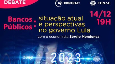 O economista Sergio Mendonça, ex-diretor técnico do Departamento Intersindical de Estatística e Estudos Socioeconômicos (Dieese), o coordenador da Comissão de Empresa dos Funcionários do Banco do Brasil (CEBB), João Fukunaga, e a representante eleita pelos empregados no Conselho Administrativo da Caixa Econômica Federal e diretora da Federação Nacional das Associações do Pessoal da Caixa (Fenae), Rita Serrano, são os convidados da Confederação Nacional dos Trabalhadores do Ramo Financeiro (Contraf-CUT) e da Fenae para o debate “Bancos públicos: Situação atual e perspectivas no governo Lula”, que será realizado nesta quarta-feira (14), a partir das 19h (horário de Brasília).