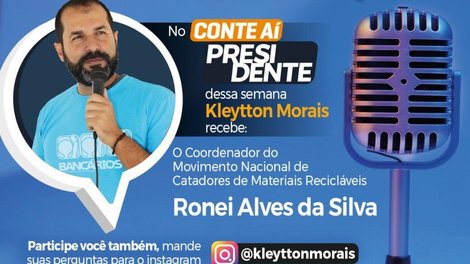 No episódio do podcast ‘Conte aí, presidente’ desta quinta-feira (10), a entrevista é com o coordenador do Movimento Nacional de Catadores de Materiais Recicláveis, Ronei Alves da Silva. O bate papo terá como tema “Bancos públicos: Sustentabilidade e inclusão socioprodutiva de catadores em questão”. O programa, disponível a partir das 11h, é apresentado pelo presidente do Sindicato, Kleytton Morais.