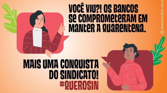 “Muitos bancários que estão trabalhando em casa têm procurado os sindicatos apreensivos. Buscam saber se a quarentena será mantida, se terão que voltar ao trabalho em suas agências e departamentos, enfim, estão com medo de ficarem expostos ao vírus e serem contagiados”, afirmou a presidenta do Sindicato dos Bancários de São Paulo, Osasco e Região, Ivone Silva, que é uma das coordenadoras do Comando Nacional dos Bancários.