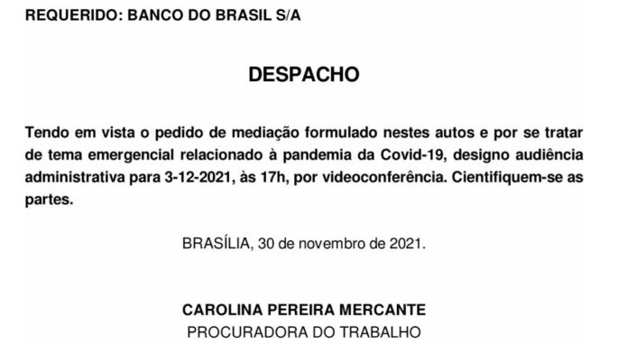 Na terça (30), a procuradora do Trabalho Carolina Pereira Marcante assinou despacho atendendo ao pedido de mediação feito pelo Sindicato. Reconhecendo a urgência da demanda, a procuradora agendou uma audiência com as partes para sexta (3), às 17h, por videochamada.