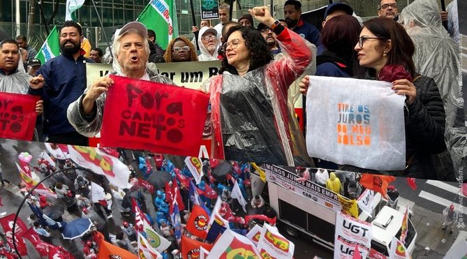 "10,5% ao ano são juros extorsivo, abusivo, não tem justificativa. A única que a gente consegue entender é que o Campos Neto é contra o desenvolvimento do país", avaliou a presidenta do Sindicato dos Bancários de São Paulo, Osasco e Região (Seeb-SP), Neiva Ribeiro.