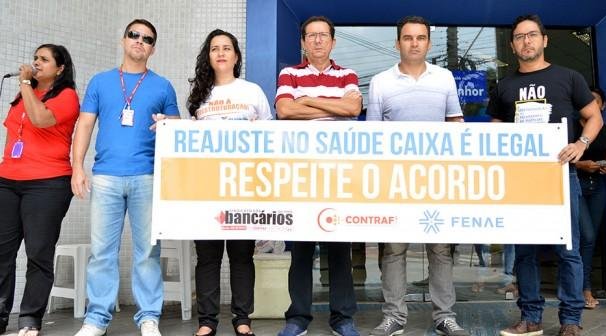 Belém PA - Não bastasse a implantação do caixa-minuto e também de um possível Plano de Demissão Voluntária, os bancários e bancárias da Caixa foram surpreendidos no último dia 26 com um reajuste arbitrário e ilegal no plano de saúde de todo o funcionalismo e seus dependentes. Para alertar os trabalhadores e trabalhadoras do banco, bem como protestar contra mais esse golpe de Michel Temer, o Sindicato dos Bancários, Contraf-CUT e Fetec-CUT/CN estiveram presentes no Dia Nacional de Luta em Defesa do Saúde Caixa, nesta terça-feira (31).