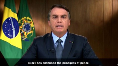 Bolsonaro ainda afirmou que o Brasil sofreu um ataque no ano passado pelo derramamento de óleo da Venezuela no Nordeste e que o Brasil é um exemplo em direitos humanos por receber 4 mil venezuelanos oriundos da ditadura bolivariana.