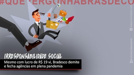 Mesmo com o lucro líquido recorrente de R$ 19,458 bilhões, o Bradesco fechou 7.754 postos de trabalho e 1.083 agências em 2020, de acordo com análise realizada pelo Departamento Intersindical de Estatística e Estudos Socioeconômicos (Dieese), baseada no balanço do banco. Entre o final de março e de dezembro, foram fechados 7.212 postos de trabalho e 772 agências, apesar do compromisso assumido pelo banco de não demitir durante a pandemia.