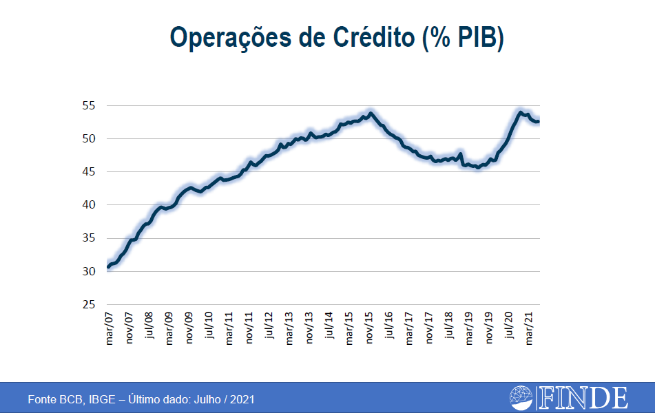 A economista apresentou um gráfico com o histórico com a porcentagem do crédito em ralação ao PIB. “Vemos que vínhamos em um processo de crescimento, que foi revertido a partir de 2015, com uma mudança muito drástica sobre o que o governo entende como Estado, que foi quando começou a travar uma luta declarada e não declarada contra os bancos públicos”, afirmou a economista.