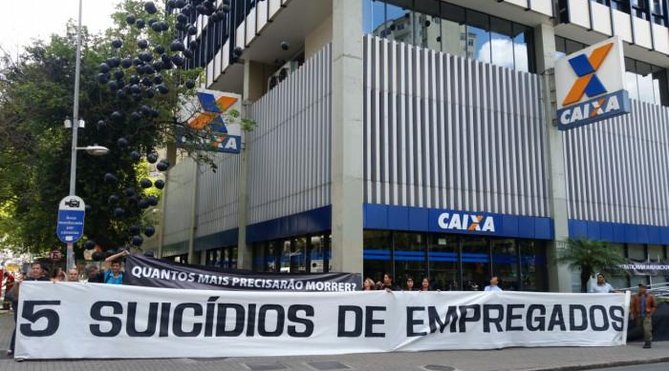 Nesta quinta-feira (22), assistimos uma manifestação sindical, em Curitiba, para denunciar as más condições e as pressões a que os funcionários estão sendo submetidos. “Temos que intensificar a mobilização por todo o Brasil. Não podemos permitir este desmonte dos Bancos públicos e da saúde dos bancários que está sendo feito pelo governo golpista”, completou.