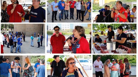 Foi servindo cachorro-quente para os empregados do Matriz I da Caixa na hora do almoço desta quinta-feira (9) que o Sindicato mandou seu recado e disse um NÃO em alto e bom tom à “cachorrada do governo” e que não vai medir esforços para defender esse que é um dos maiores patrimônios do povo brasileiro.