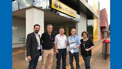 Acompanhado pelos diretores do Sindicato dos Bancários de Dourados e Região MS, Carlos Longo, presidente, Raul Verão, vice-presidente, Edson Rigoni, secretário geral e de Luciana Rodrigues, do Sindicato dos Bancários de Campo Grande e Região MS, Cleiton dos Santos se reuniu com os funcionários e funcionárias nas agências, Centro, Parque do Ipês, Marcelino Pires, Weimar Torres e, também do Escritório Digital.
