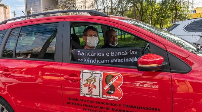 Nesta quarta-feira, dia 16 de junho, os bancários saíram em carreata pelas ruas de Campo Grande para cobrar as autoridades e alertar a população sobre a importância da inclusão da categoria como grupo prioritário na vacinação contra a Covid-19.