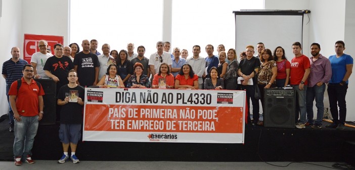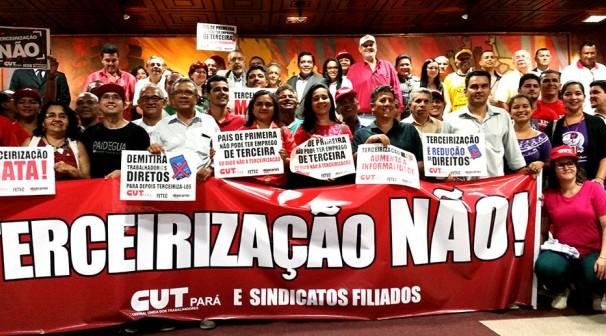 A presidenta do Sindicato dos Bancários do Pará, Rosalina Amorim, que na ocasião também falou em nome da Contraf-CUT, enfatizou que o projeto de Terceirização que tramita no Congresso Nacional é “nefasto” para a classe trabalhadora, em especial para a categoria bancária, e por isso deve ser barrado pelo Congresso e por toda a sociedade brasileira.