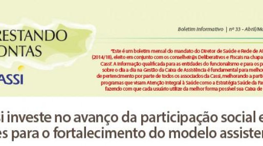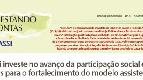 O 33º Boletim Informativo da Cassi “Prestando Contas” já está disponível na página de publicações do site da Confederação Nacional dos Trabalhadores do Ramo Financeiro (Contraf-CUT).