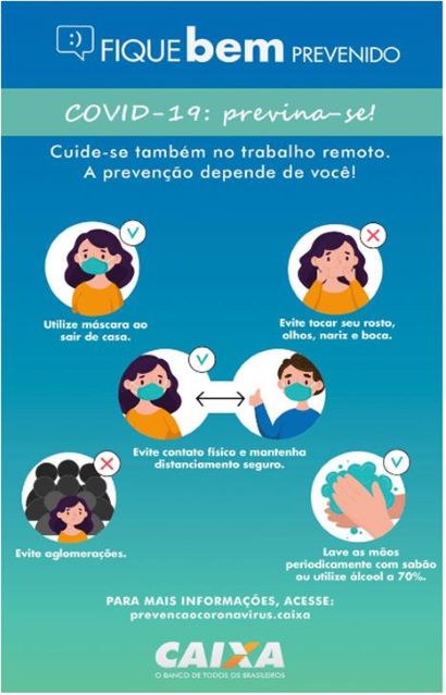 A pedido da CEE, a Caixa elaborou imagens ilustrativas com informações sobre os protocolos de segurança sanitária para prevenção do contágio e dos sintomas de Covid-19 e de Influenza. “Estamos contribuindo com a divulgação dos cards elaborados pela Caixa para ajudar a propagar as informações. É importante que os colegas leiam e ajudem a difundir as informações. Quem sabe mais, luta melhor. E, neste caso, a luta é contra os vírus”, disse a coordenadora da CEE. Os cards foram o conteúdo mais visualizado durante esta semana no perfil da Contraf-CUT no Instagram.