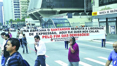 Naquele ano, o Santander patrocinava a Taça Libertadores da América, que reúne as melhores equipes de futebol da América do Sul. Por ocasião da final da competição, entre Santos e Peñarol, realizada em São Paulo, o movimento sindical aproveitou a presença do então presidente mundial do banco, Emílio Botin, no Estádio do Pacaembu, para denunciar milhares de demissões, o congelamento de salários dos aposentados e a liderança da instituição no ranking de reclamações ao Banco Central. Além disso, os representantes dos trabalhadores queriam fomentar o debate sobre a infeliz ironia de um banco espanhol patrocinar a Taça Libertadores da América, uma vez que os espanhóis que colonizaram o continente foram exploradores, e não “libertadores”.
