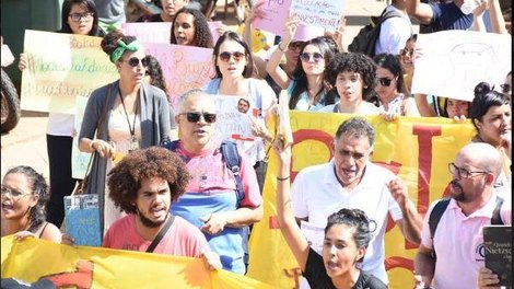 A concentração dos manifestantes ocorreu em frente ao Colégio São José e, em marcha, com cartazes em mãos e palavras de ordem, eles seguiram para o centro da cidade.