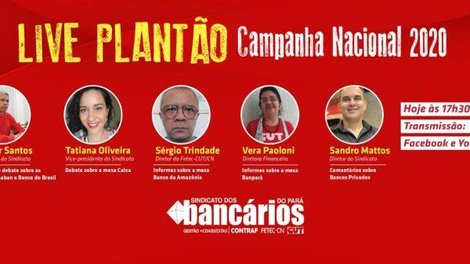 Plantão da Campanha não para! Nosso sábado hoje está diferente. Daqui a pouco, às 17h30, no Facebook e Youtube, vamos tirar todas as tuas dúvidas sobre as mesas de negociação de cada banco.