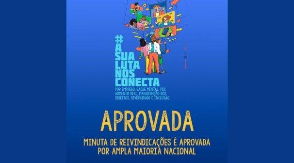 A minuta, que teve o índice de aprovação nacional superior a 95%, será, oficialmente, entregue pelo Comando Nacional dos Bancários à Federação Nacional do Bancos (Fenaban) na próxima terça-feira (18).