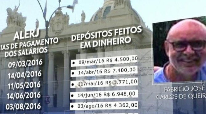 A coincidência de datas ocorre logo nos primeiros depósitos feitos em 2016. Em 12 de janeiro, dia de pagamento na Alerj, por exemplo, o então assessor recebeu três depósitos em espécie, nos valores de R$ 4.400, R$ 5.566 e R$ R$ 1.771.