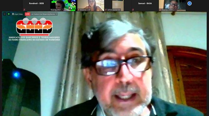 O bancário do Bradesco (ex HSBC) e ex-diretor da Contraf-CUT de 2003 a 2018, Miguel Pereira, foi o segundo palestrante a se apresentar no 11º Congresso Estadual dos Bancários de Rondônia (COBAN) e fez uma vasta Análise da Conjuntura Nacional, principalmente neste momento de pandemia do novo coronavírus.