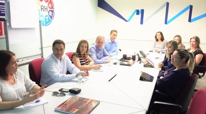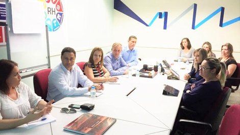 Entre os representantes da COE estavam, Malu, Fetec/SP; Nilcéia - Fetec/PR; Lourival - Feeb/SP; Geraldo - Fetrafi/MG; e o coordenador da COE, Gheorge Vitti. Para representar o banco, estiveram presentes Eduara e Priscilla da área de relações sindicais, Elka, do recrutamento/UNIBRAD, e Alessandra, da área de gestão de pessoas.