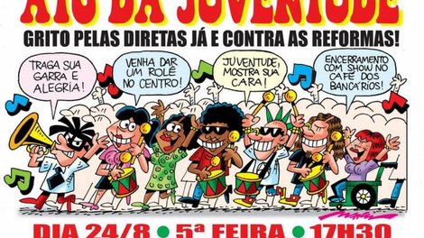No mesmo dia, às 17h30, acontecerá o Grito da Juventude pelas Diretas Já e contra as Reformas. A concentração para o ato será em frente ao Sindicato dos Bancários de São Paulo (rua São Bento, 413, Centro, São Paulo).