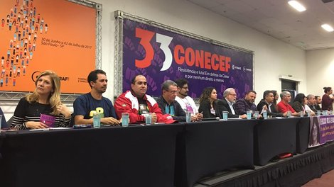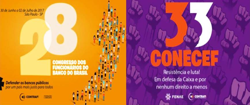 Da Caixa, é o 33º Congresso Nacional dos Empregados da (Conecef) Empregados, que tem 464 delegados e observadores. Serão distribuídos em quatro grupos para debater sobre Saúde Caixa/saúde e condições de trabalho (Grupo 1); Funcef, aposentados e Previdência (Grupo 2); Reestruturação, reforma trabalhista e terceirização (Grupo 3); e Defesa da Caixa e demais bancos públicos (Grupo 4).