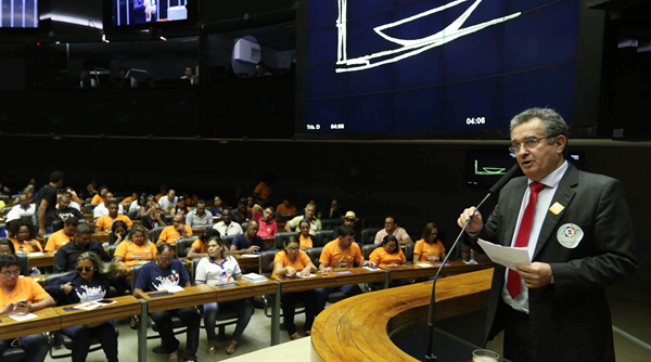 Com o objetivo de conscientizar os parlamentares sobre a importância da Caixa Econômica Federal e de outros bancos públicos, e com base em requerimento do deputado Daniel Almeida (PCdoB/BA), a Câmara dos Deputados realizou nesta terça-feira (5) uma Comissão Geral para discutir os impactos da reestruturação dos bancos públicos na economia brasileira. O ato foi realizado em sessão solene no Plenário Ulysses Guimarães e contou com a participação de Jair Pedro Ferreira (presidente da Fenae) e de outros representantes de instituições financeiras públicas federais, a exemplo de Reinaldo Fujimoto (presidente da Anabb) e de Rita Josina Feitosa da Silva (presidente da AFBNB).