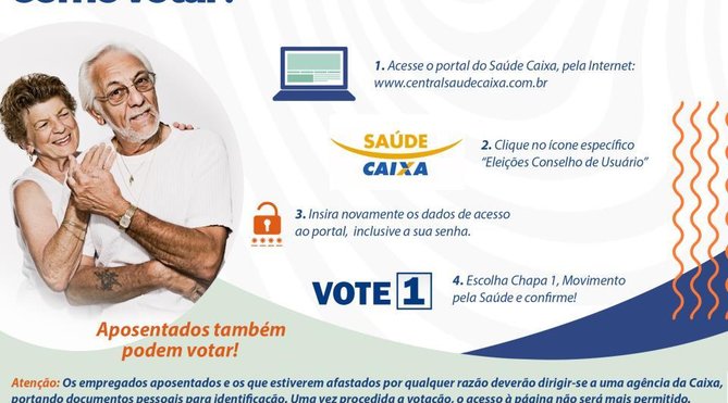 A votação para a escolha do Conselho de Usuários do Saúde Caixa começou na segunda-feira (3) e segue até sexta-feira (7).