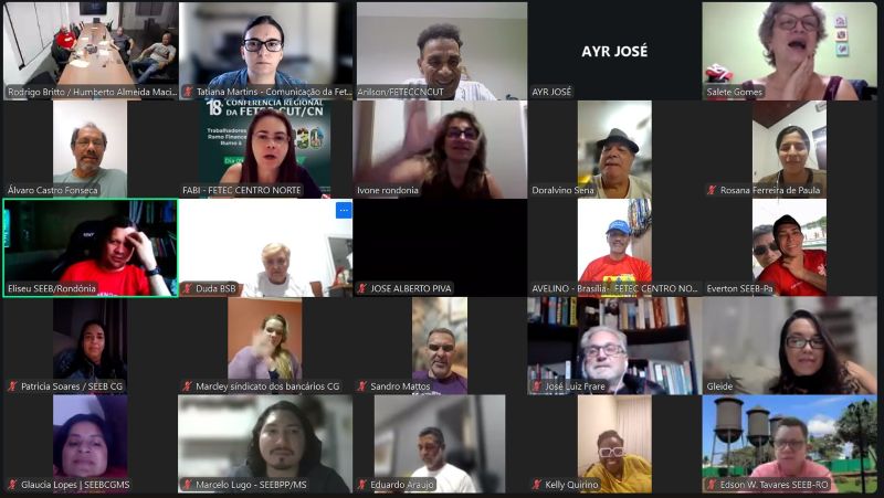 A 18ª Conferência Regional da Federação dos Trabalhadores em Empresas de Crédito do Centro-Norte (Fetec-CUT/CN), realizada de forma virtual neste sábado 9 de agosto, discutiu os principais desafios enfrentados pelos trabalhadores do ramo financeiro (como demissões em massa, fechamento de agências, avanço da inteligência artificial e precarização do trabalho) e aprovou um plano de lutas e uma série de resoluções que serão levadas à 27ª Conferência Nacional dos Bancários, aos encontros nacionais de bancos privados e congressos dos bancos públicos, que acontecerão em São Paulo entre os dias 21 e 24 de agosto.