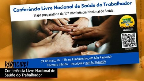 Acontecerá no dia 24 de maio, das 9h às 17h, na Fundacentro, em São Paulo, a Conferência Livre Nacional de Saúde do Trabalhador, etapa preparatória para a 17ª Conferência Nacional de Saúde. O evento será realizado em formato híbrido.