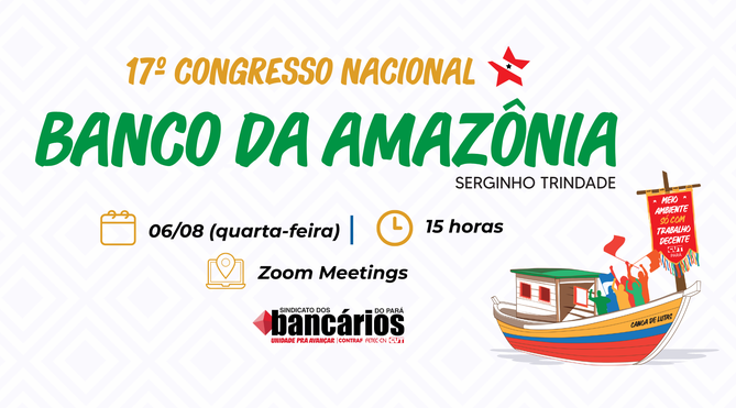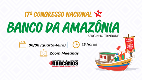 Bancários e bancárias do Banco da Amazônia devidamente eleitos na assembleia e inscritos nas vagas remanescentes participam nesta quarta-feira (6), em formato virtual, do 17º Congresso Nacional – Serginho Trindade, a partir das 15h. O link de acesso à sala será enviado no e-mail informado no formulário de inscrição.