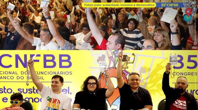 O 35º Congresso Nacional dos Funcionários do Banco do Brasil (35º CNFBB), realizado em São Paulo nesta sexta-feira 22 de agosto, após discutir os principais problemas dos trabalhadores da empresa, aprovou um plano de lutas que abrange desde melhoria das condições de trabalho, fim das metas abusivas e do assédio moral que adoecem os trabalhadores, e campanha pelo fortalecimento do papel público do BB, passando pela defesa da governança da Previ e da busca de uma solução para a sustentabilidade da Cassi, com isonomia de direitos para todo o funcionalismo.