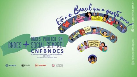 As associações dos funcionários do sistema BNDES (AFBNDES, AFBNDESPAR e AFFINAME), com o apoio do Sindicato dos Bancários do Rio e da Confederação Nacional dos Trabalhadores do Ramo Financeiro (Contraf-CUT), irão realizar na próxima terça-feira (7), das 19 às 21h, o Congresso Nacional dos Funcionários do Banco Nacional de Desenvolvimento Econômico e Social (BNDES). O evento será virtual, por meio da plataforma Zoom.