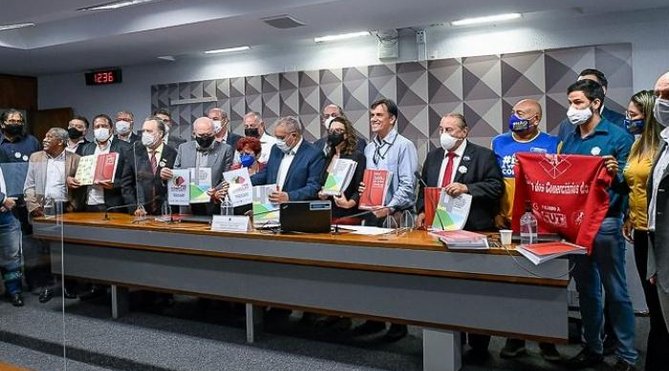A Agenda Sindical 2022, separada em dois documentos “Agenda Legislativa e a Agenda Jurídica”, foi entregue pelo presidente nacional da CUT, Sérgio Nobre, e das demais centrais sindicais que debateram e construíram os textos, a parlamentares de oposição ao governo de Jair Bolsonaro (PL), no início da tarde desta terça-feira (12), no Congresso Nacional, em Brasília.