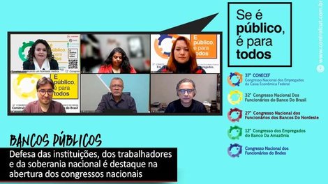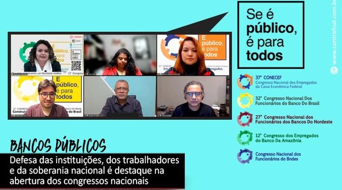 “Nossa organização é nacional, com militantes em todas as regiões do país. Por isso, temos a obrigação de defender os bancários e as bancárias desses bancos, mas também temos obrigação de defender esses bancos como ferramenta de desenvolvimento econômico com distribuição de renda. Esses bancos têm um papel social, eles foram criados para isso”, disse Juvandia “Temos que ter um o projeto de nação, de soberania nacional e é isso que está sendo atacado. A democracia está sendo atacada. Nós somos representantes dos trabalhadores, estamos do lado dos trabalhadores e vamos estar sempre, sempre que tiver um ataque nós vãos lutar contra. Taí a importância de estar realizando os congressos dos bancos públicos neste momento. Nós não podemos achar normal que mais de meio milhão de brasileiros perderam a vida, porque não tinha vacina, porque o governo não quis comprar vacina. É uma política genocida e essa política genocida, é uma política entreguista também, que ao mesmo tempo entrega as empresas públicas, que é isso que está acontecendo. O Estado tem que ser o indutor de desenvolvimento, o Estado tem que fazer o papel de distribuir renda. A gente tem que debater nesses congressos que Brasil que a gente quer e como é que esses bancos, como ferramentas, podem contribuir para um Brasil inclusivo, com justiça social, um Brasil feliz e não um Brasil como o que a gente está vendo, que é triste, é dolorido e deprimentes. A gente abre aqui esse congresso com essa obrigação, de debater os problemas que os bancários e as bancários dessas instituições estão vivendo, mas também de debater o papel dessas instituições para que a gente tenha de verdade um projeto nacional, um país soberano, democrático. Nós temos que defender a democracia.”