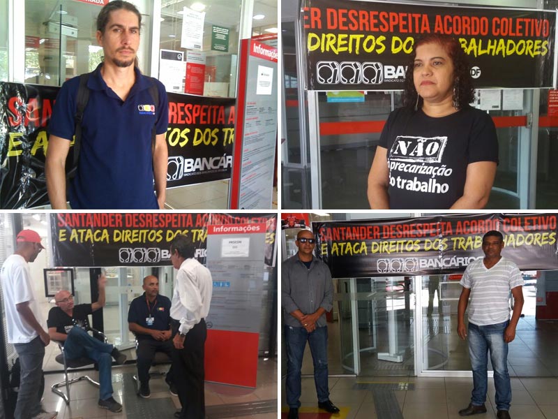 A atividade também repudiou as mudanças feitas pelo Santander sem consulta ou negociação com os trabalhadores e as representações sindicais. As ações do banco desrespeitam os funcionários e o Acordo Coletivo de Trabalho, que tem vigência até 31 de agosto de 2018.