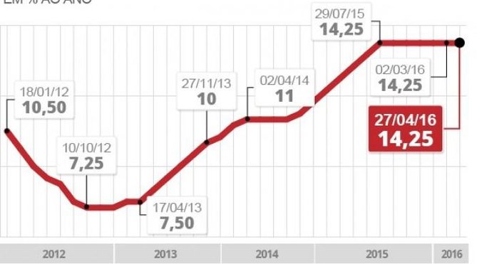 Segundo o presidente da Contraf-CUT, Roberto von der Osten, o Copom desde 2014 elevou sete vezes seguidas a taxa Selic, que cresceu 3,25 pontos percentuais no período, enquanto a escondia, caminhou para a recessão. A partir de setembro do ano passado suspendeu o aperto e congelou a taxa em 14,25% ao ano. A partir daí a inflação reagiu levemente para baixo. “O Copom nesta terceira reunião do ano, manteve a taxa. Parece não ter entendido que é urgente baixar para retomar o crescimento e superar a crise econômica”.